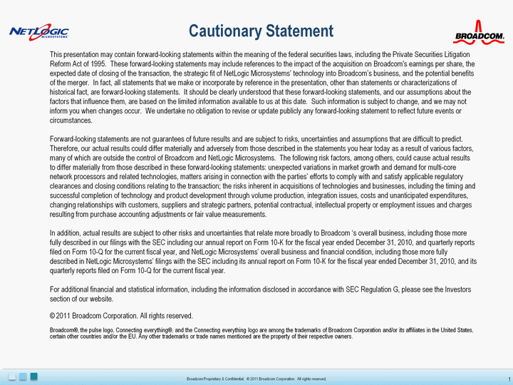 and investors to discuss Broadcoms contemplated acquisition of NetLogic Microsystems, Inc.