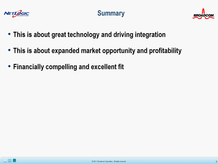 strategic fit of NetLogic Microsystems technology into Broadcoms business, and the potential