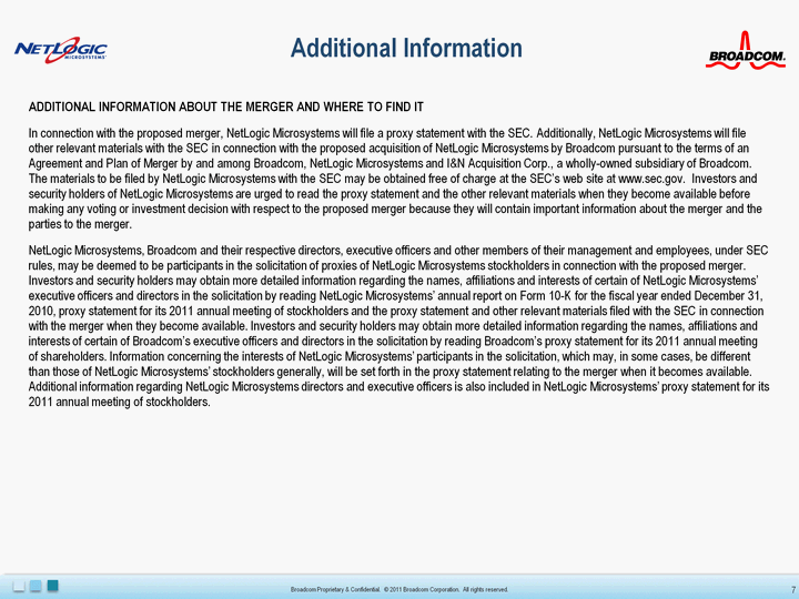 In connection with the proposed merger, NetLogic Microsystems will file a proxy statement with the SEC. Additionally, NetLogic Microsystems will file