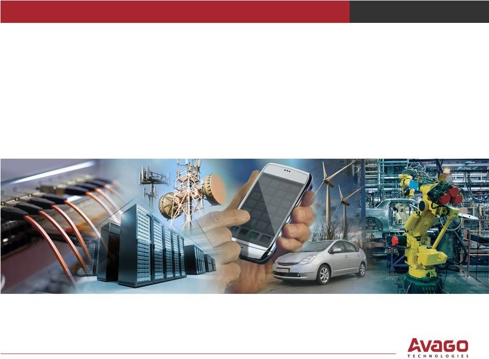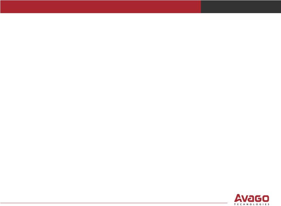 This document contains forward-looking statements which address Avagos expected future business and financial performance. These forward-looking statements are based on current expectations, estimates, forecasts and projections of future Avago or industry performance, based on managements judgment, beliefs, current trends and market conditions and involve risks and uncertainties that may cause actual results to differ materially from those contained in the forward-looking statements. Accordingly, we caution you not to place undue reliance on these statements. For Avago, particular uncertainties that could materially affect future results include our ability to achieve the growth prospects and synergies expected from acquisitions we may make, including LSI; delays, challenges and expenses associated with