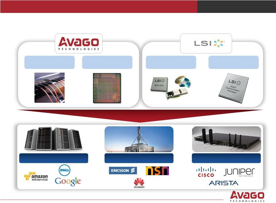 | | Diversifies revenue and scales up Avago across multiple attractive end markets |